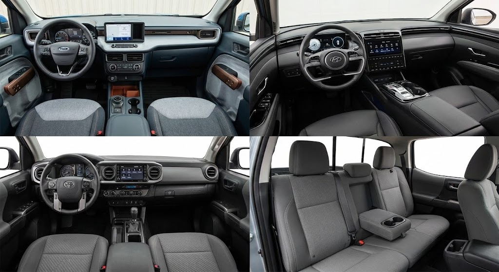 Small pickups no longer feel utilitarian on the inside. Modern cabins offer: