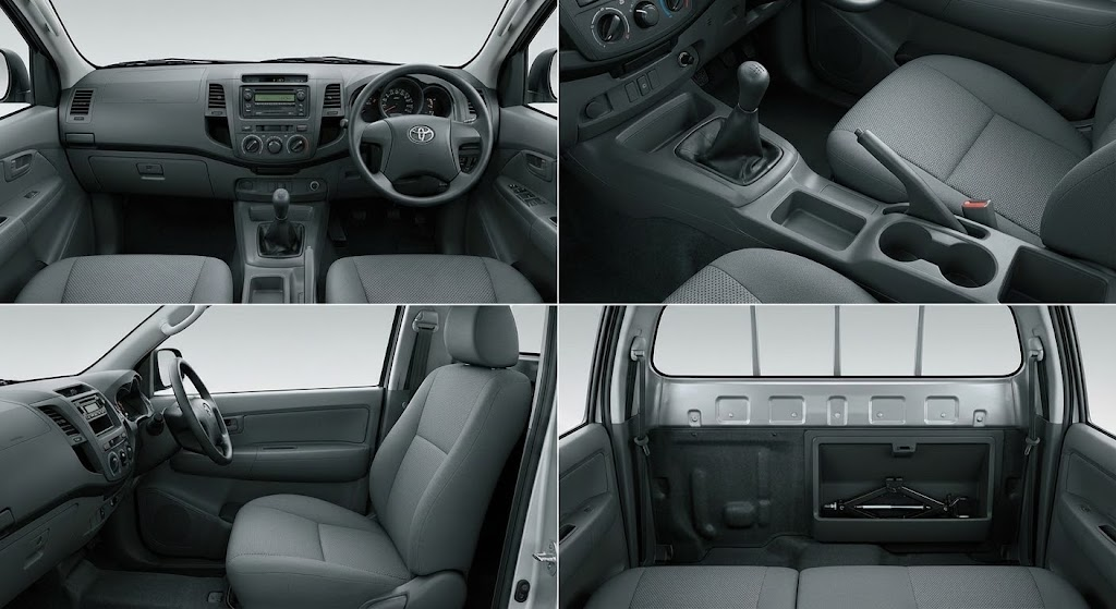 Step inside the Hilux Champ and the focus on function becomes clear. The cabin is basic, durable, and easy to clean. Hard-wearing materials dominate, chosen for longevity rather than luxury.